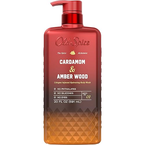Old Spice Body Wash for Men, The Spice Alchemist Collection, 24/7 Cologne Infused Hydration, No Trade Off Formula, Free of Phthalates Silicones & Dyes, Cardamom + Amber Wood Scent, 20 oz