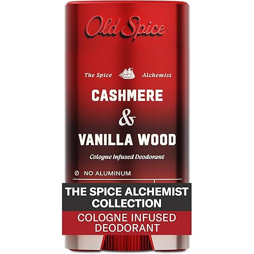 Old Spice Aluminum Free Deodorant for Men, The Spice Alchemist Collection, 24/7 Cologne Infused Scent, No Trade Off Formula, Free of Parabens & Phthalates, Cashmere + Vanilla Wood Scent, 3.0 oz