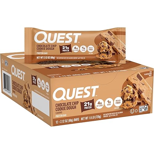 Quest Nutrition Chocolate Chip Cookie Dough Protein Bars, High Protein, Low Carb, Gluten Free, Keto Friendly, 12 Count