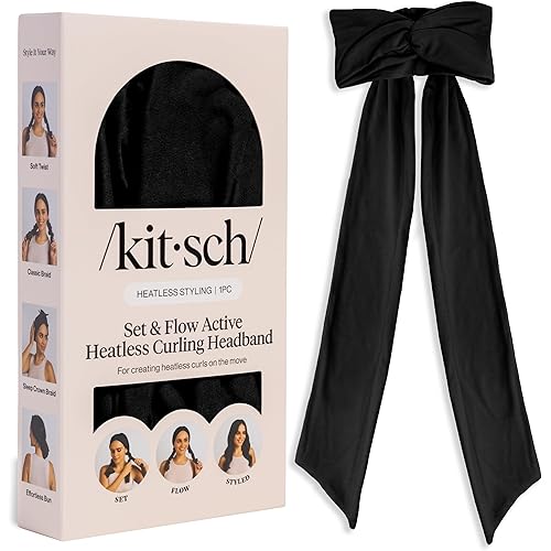 Kitsch Set & Flow Active Heatless Curling Headband For Women – Achieves Heatless Curls Overnight, No Heat Damage | Heatless Curlers with Flexible Fit | Great During Gym Sessions, Travel - Black, 1pc